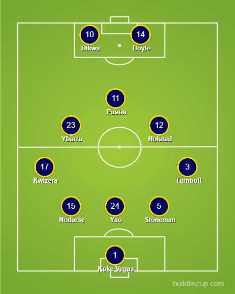 The thing that stuck out to me about this lineup most was Marc Ybarra and Mark Doyle both getting starts over Zach Herivaux and JJ Williams. I wrote about the Ybarra vs Herivaux competition in the leadup to this game but as it turns out, Herivaux has a broken bone in his foot that he suffered during the Detroit City FC game. After the game on Saturday, Khano Smith said that Zach could be out 2-4 weeks. As for Doyle starting over JJ, I was a little surprised to see this. If it isn’t injury related, then my guess would be that JJ has temporarily lost his starting position due to not getting goals. Doyle did show good attacking movement against Oakland but was unable to produce any finishes.