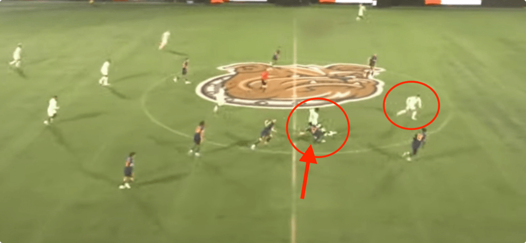 On set pieces, Ybarra seemed to mostly deliver to the center and top of the 6-yard box – it did lead to some dangerous opportunities, so they were not bad efforts. In the 34th minute, Ybarra put in a corner kick which led to a double penalty shout, followed by his own shot attempt which he hit the cross bar with.