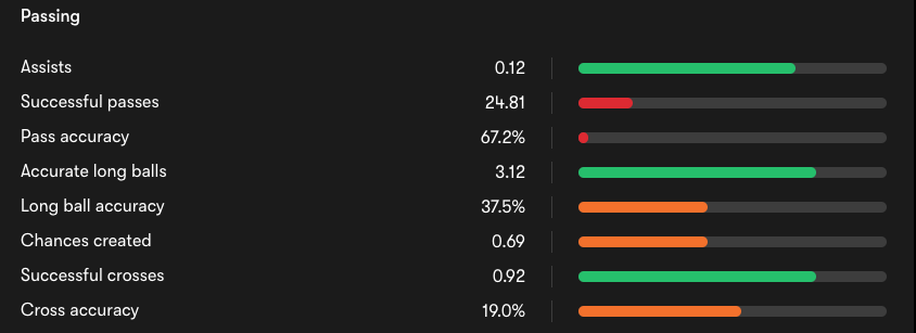 When looking at his stats on a per 90 basis, he profiles well in terms of assists, accurate long balls, tackles and interceptions. Sounds a bit like Stephen Turnbull to me.