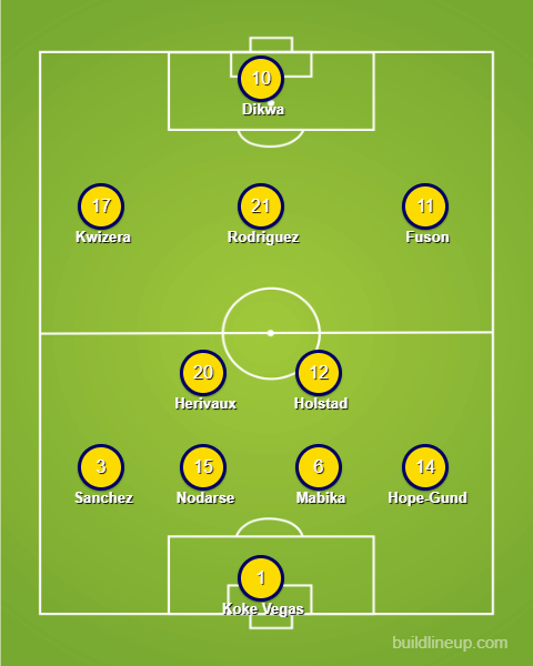 • Mabika got his first start last time out and looked great alongside Nodarse. There’s no reason to make a change here and you’ll have Stoneman and possibly Yao available from the bench to pick up some late minutes if needed. Sanchez could probably use a break but there isn’t a like-for-like replacement available. The hybrid RB/RCB role for Hope-Gund suits him so well and he more than deserves his contract for the full season