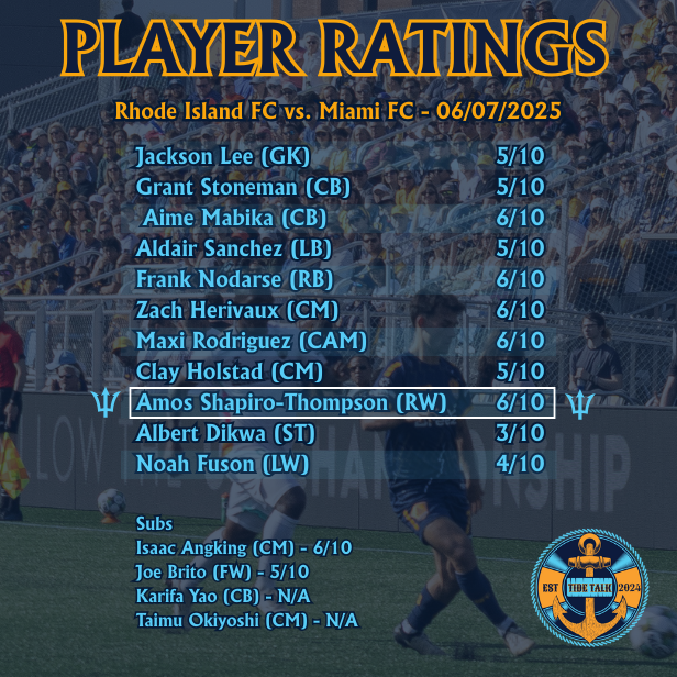 Players got an earful from many of the Rhode Island FC faithful on Saturday night when they visited the south stand at the final whistle. Many of the players looked sheepish (deservedly so) during the rebuke, and Amos Shapiro-Thompson assured fans that they knew it wasn’t good enough as he reluctantly accepted his (also well deserved) man of the match paddle.